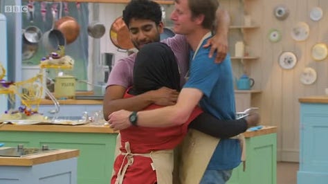 Samesies for contestants on the Great British Bake Off. They’re…nice to each other?
